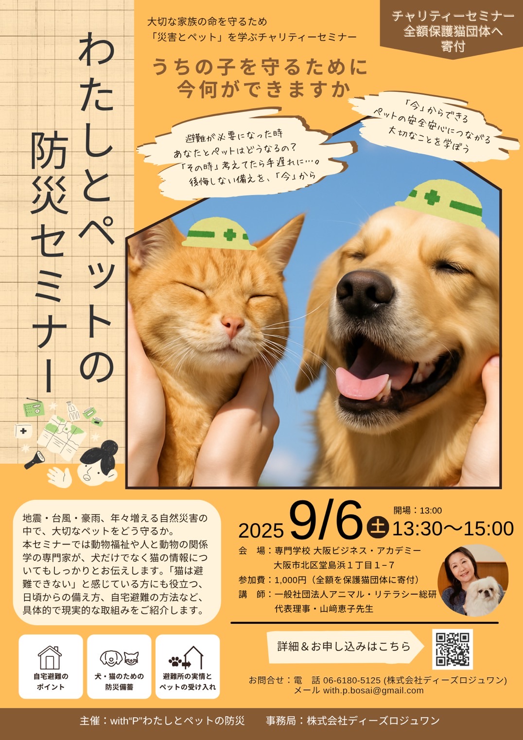 そんな命に関わるテーマに向き合う「ペット防災セミナー」を、2025年9月6日(土)に大阪で開催します。